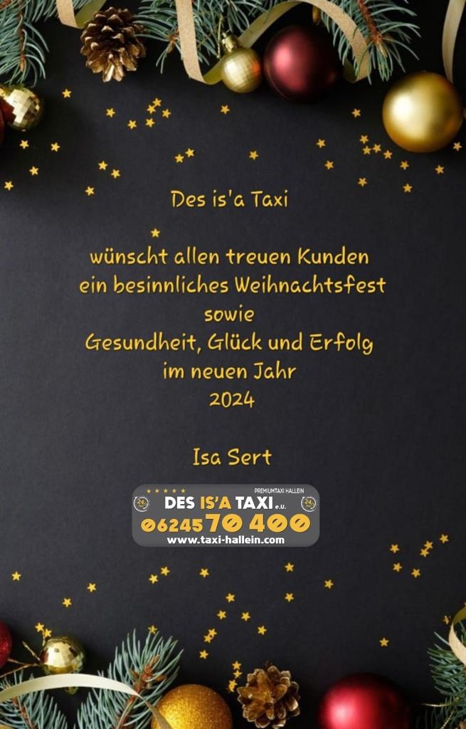 DES IS’A TAXI wünscht allen treuen Kunden ein besinnliches Weihnachtsfest sowie Gesundheit, Glück und Erfolg im neuen Jahr!